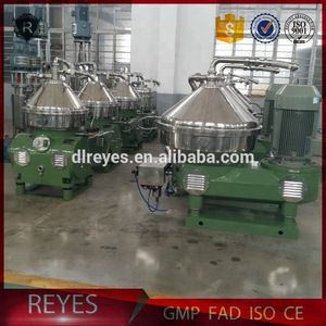 The Reyes Centrifuge separator is designed for intermittent discharge of solids , while separating two intermixed and mutually insoluble liquid phases of different densities. In different optimized executions it is used for a large number of duties, from handing separation of fish press liquid , stick water and extract, and on the other hand purification of fish oil and liver oil , animal fats , peel oil and similar oil products.