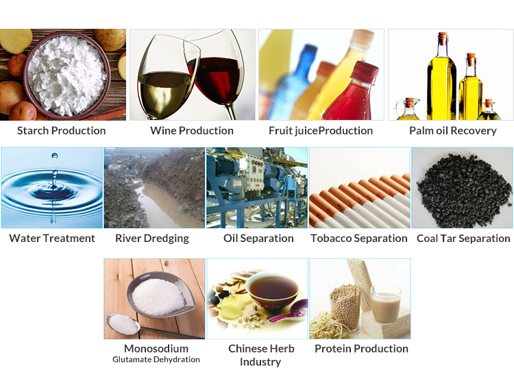 LW series Industry Decanter centrifuge is widely used in wastewater treatment, crude oil recovery, coal tar recovery, palm oil recovery, fruit juice production, protein production, DDGS production, starch production, food waste treatment, etc. with VFD, and PLC Control, can choose 2/3 phase separation.