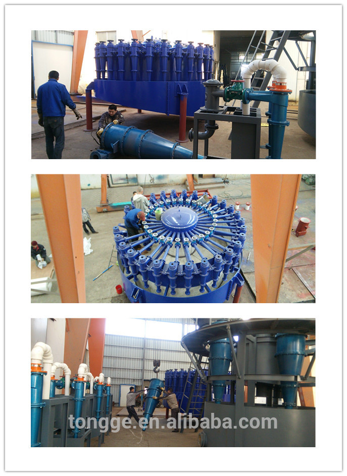 TONGGE hydrocyclone has been extensively used for closed circuit grinding and classification system , thickening, desliming, dewatering , tailings filling, damming, recovery processes in ferrous, nonferrous metal and nonmetal mine industries, and is deeply popular with customers due to high classification efficiency, simple structure, large throughput, and small occupied area.