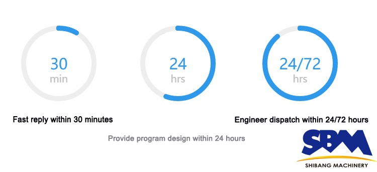 SBM intimate create "consultant & butler" service, which runs through the pre-sale consulting, design, equipment manufacturing, installation instructions, spare parts supply and production line operations and so the whole investment project life cycle to ensure "timely, efficient and effective" treatment You any stage of any feedback.