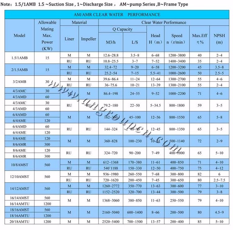 New development High Chrome Cast Iron make AM(R) Mining Horizontal Centrifugal Slurry Pump have the long time use-life. In some conditions, the new development Rubber materials have better performance when there is acid conditions. You could also find some rubber lined pump for your different required!