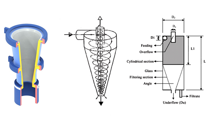 SBM Low Price Simple Structure and High Efficiency Hydrocyclone ------- It is divided into pressure-style and gravity-style and often made by circular cylindrical structures or metal tube. The hydraulic cyclone is a hydro cyclone cylinder composed of the upper part of a hollow cylinder, and the lower portion of the vertebral body. In addition, hydraulic cyclone also has feeding pipe, overflow pipe, overflow conduit and grit mouth.