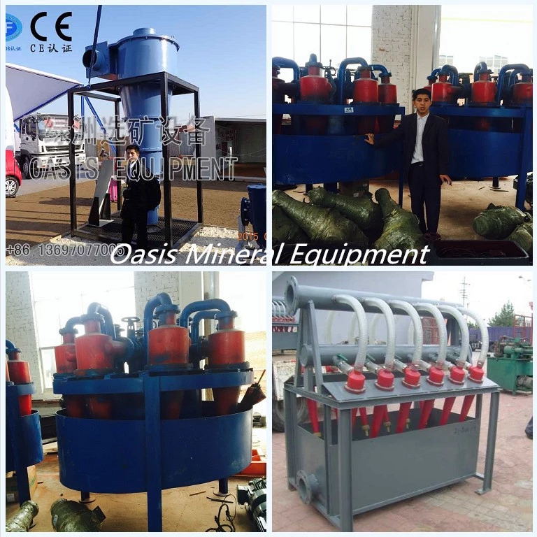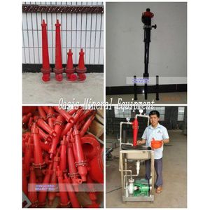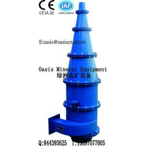 FX-type hydro cyclone is frequently used in the second paragraph of the metal concentrator mill or coarse ore in the grinding process and mechanical grading machine into a closed-circuit use, made to replace the machine seized grading machine, security and grain size grading operation. The device has a simple structure, long life, large capacity, small footprint, non-consumption of power and so on. Is a highly efficient micro-fine particles grading, de-mud equipment. The device works yes centrifugal sedimentation, when the two-phase mixture to be separated in order to put some pressure on it from the line to the mine mouth, entered after the cyclone, resulting in a strong three-dimensional elliptic rotation shear is strong swirling flow. As the coarse particles and fine particle size between the difference in the centrifugal force, centripetal force, buoyancy, fluid resistance, and so the majority of coarse particles under the action of screw trajectory by the Ministry under the spiral in the end, as the Spigot discharge, fine particles as the overflow from the overflow stream discharge tube.