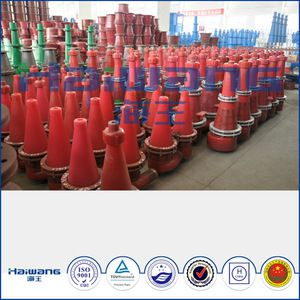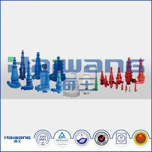 | (2)Various wear-resisting materials: High alumina ceramic, polyurethane, ceramic composite materials. We can produce suitable hydrocyclone according to client’s demand or working condition |
