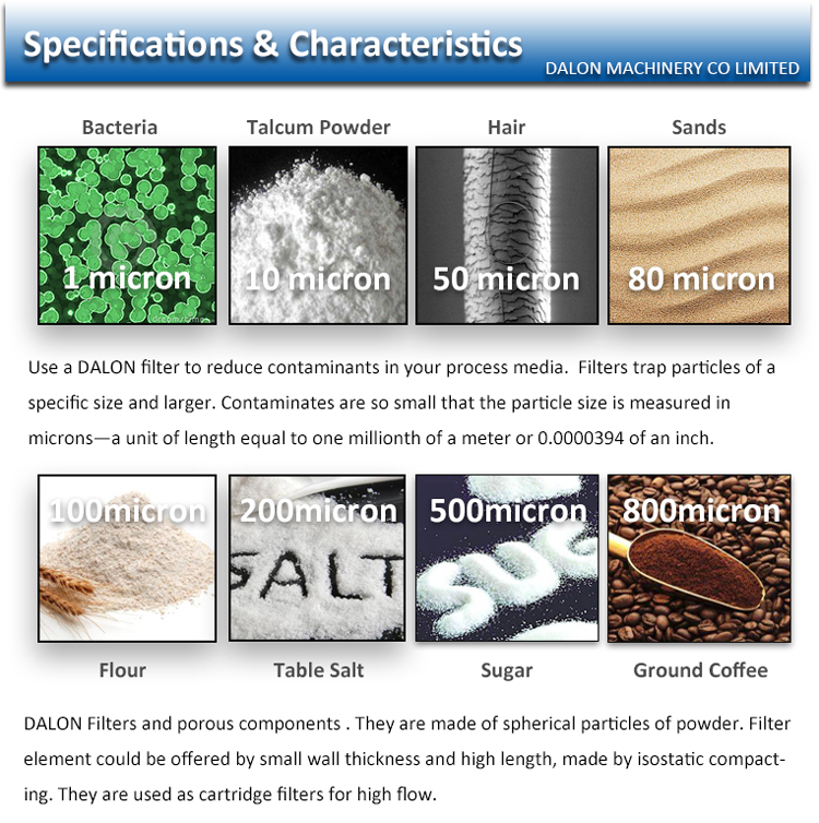 DALON elevated micrometric porosity of filter components is useful for many applications:
