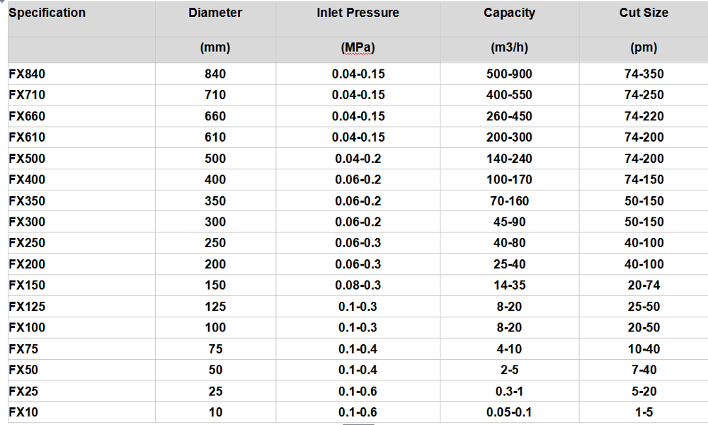 The hydro cylcone festures: