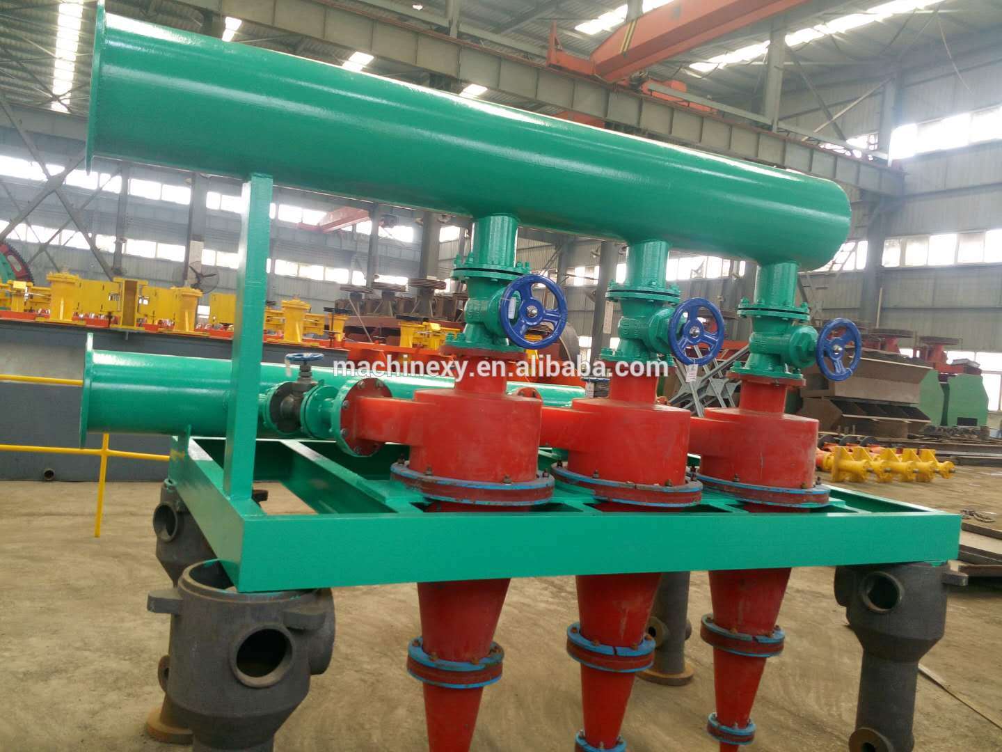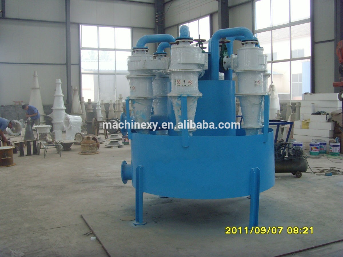 1 The 3-dimension snail-shaped feeding structure makes it possible to feed minerals in circumferential and axial directions. This design can tremendously improve classification efficiency in three ways------first of all, after entering the hydraulic cyclone, minerals avert from being disturbed by turbulent flows occurring near overflow pipes; secondly, the speed of coarse ore cyclone is accelerated towards underflow outlet; thirdly, minerals avoid swift rotating.