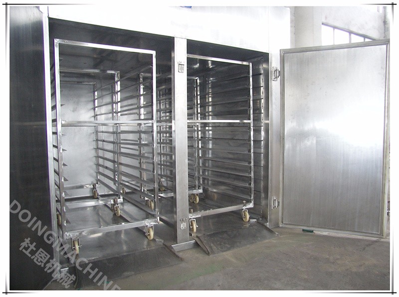 2. Uniform drying: With the specially designed air distributor, the hot air flow in each layer of trays is very uniform.The temperature difference inside the drying chamber is less than ±2 ℃. Uniform air flow and temperature results in uniform drying.