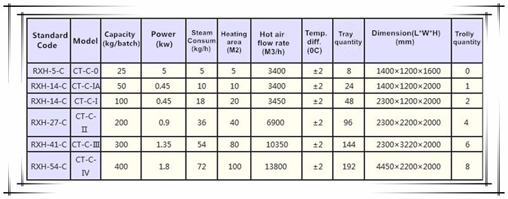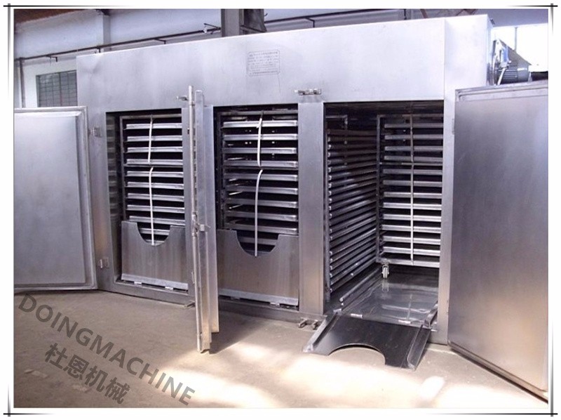 CT-C series industrial hot air tray dryer is a widely used convection chamber dryer. Inside the drying chamber trays loaded with wet material are placed on top of each other in trolleys.
