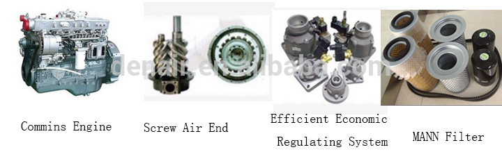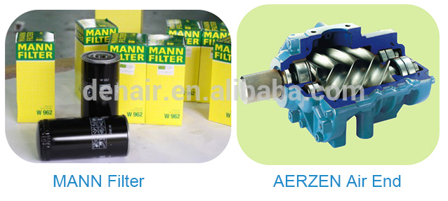 1.The combined screw air compressor integrates the parts including screw compressor,air dryer, high efficiency air filter and air tank, making it convenient for the user to install, use and move.